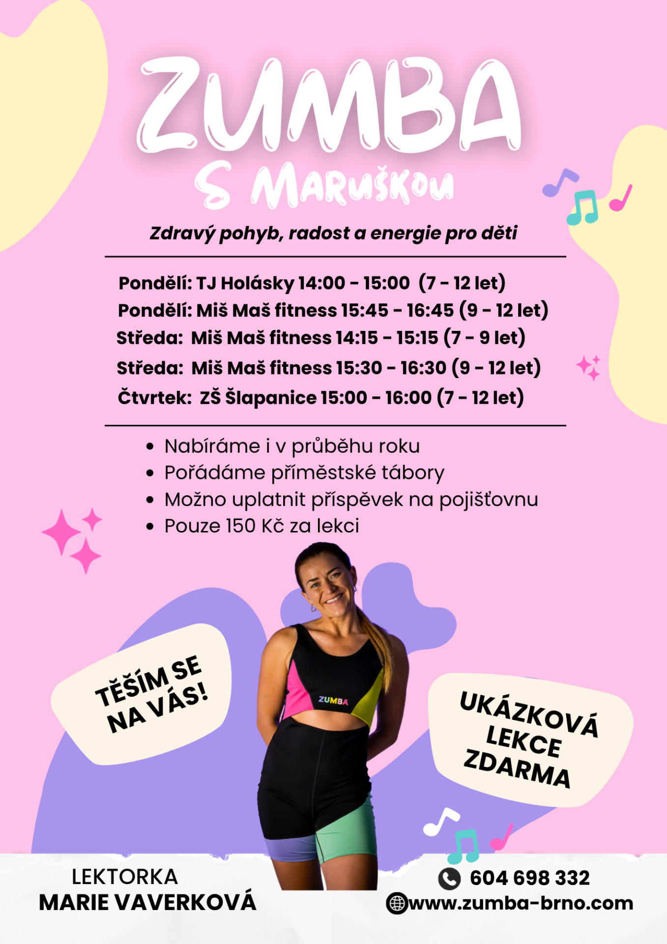 Zumba Kids je veselou formou tance, kde se děti naučí kreativitu a spolupráci. Lekce jsou plné zábavných tanečních kroků a her, které děti baví a zároveň podporují jejich pohybový rozvoj.